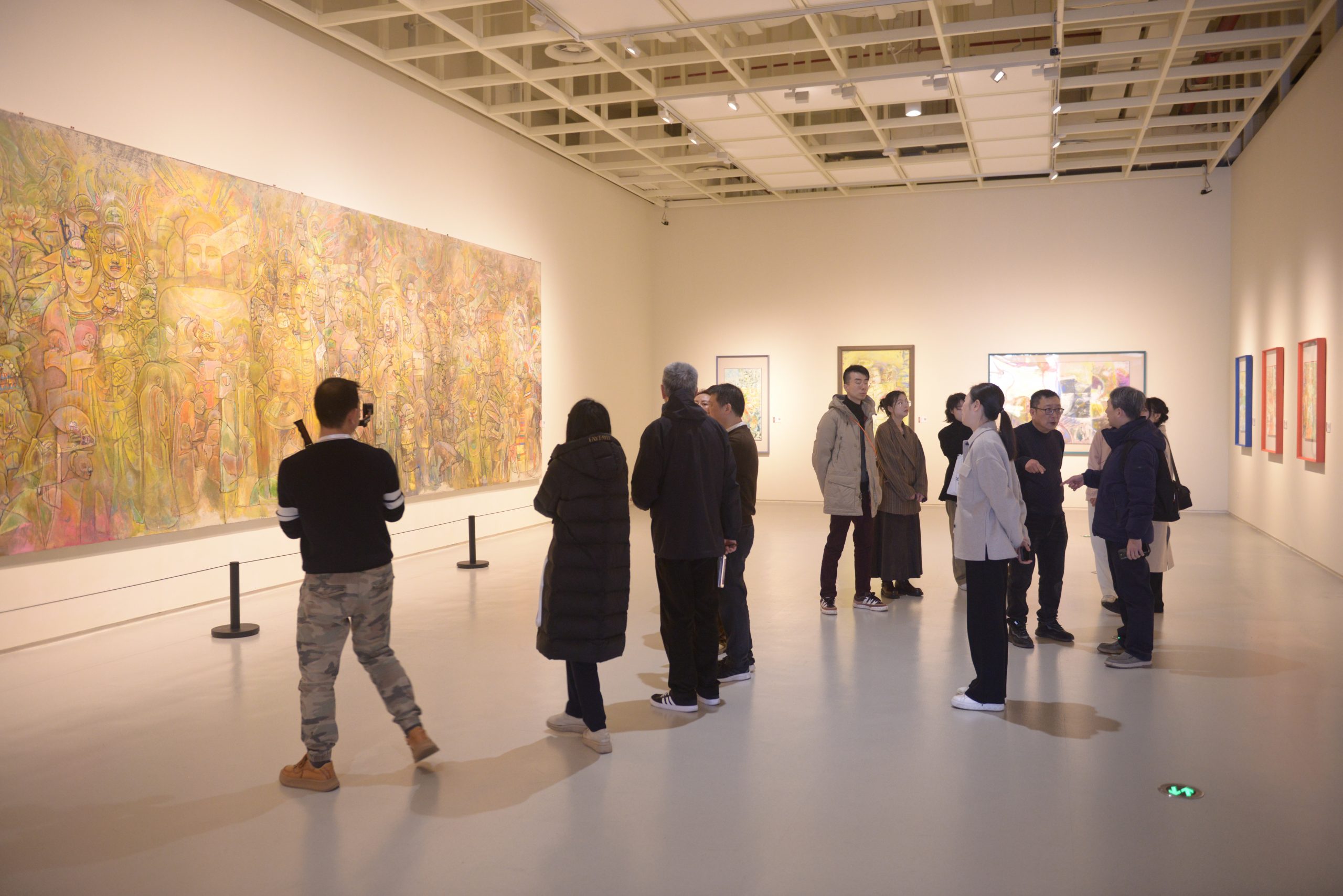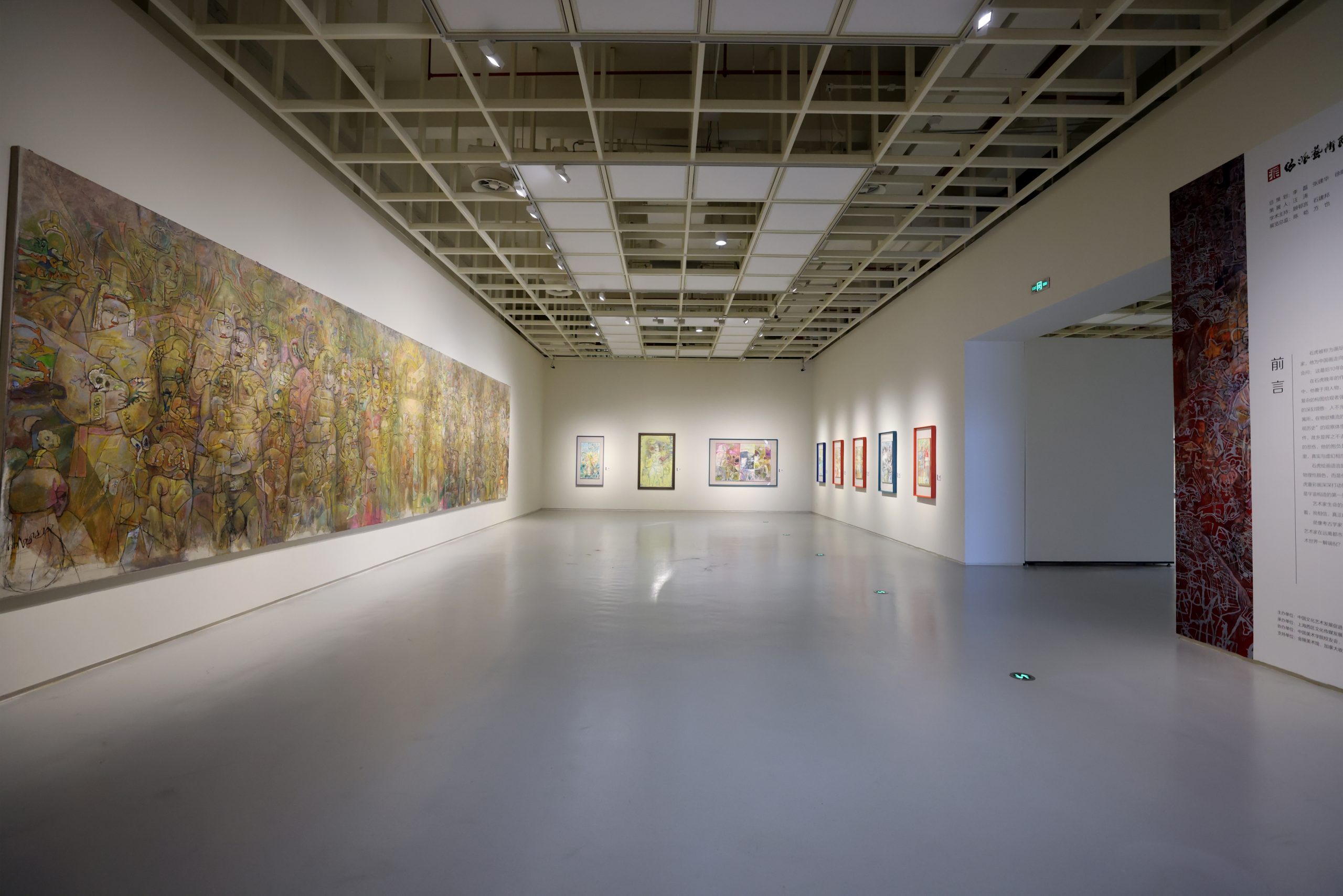 The exhibition centers on two monumental works, Eighteen Arhats and Common Prosperity, each spanning the full length of the museum’s main gallery. These horizontal compositions offer an immersive viewing experience that challenges conventional modes of framing and display.